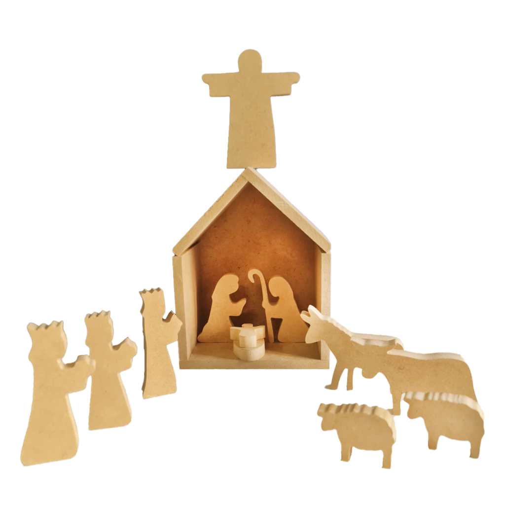 Este hermoso set de 13 piezas incluye todos los personajes esenciales para recrear la escena del nacimiento. Las medidas de referencia son son: